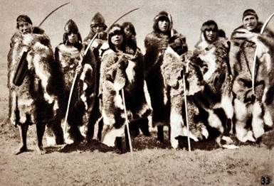 Fig. 4. Ahnikin, Shishkolh/Soldado, Halimink, Chalshoat, Puppup: alianza costanero-montesa en trato con Charles Wellington Furlong, país sél’knam, enero de 1908 (en Lanushwaiwa, 1949, lámina 23)
