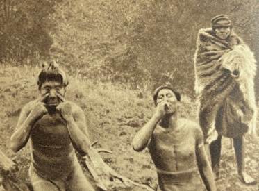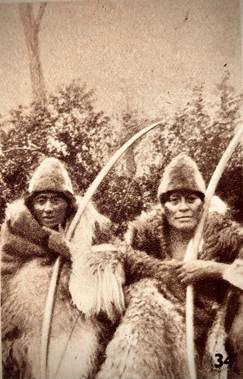 Fig. 6. Kautempkhl, Paloa en trato con Ukatush (Lanushwaiwa, 1949, lámina 34), y Kautush hacia 1910 (imagen coproducida con Carlos Gallardo, publicada en Los Onas