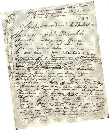 Imagen 2. Manuscrito en el que se integra un topónimo tehuelche