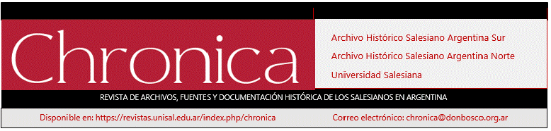 Todo este trabajo está disponible en la página web institucional del Archivo Histórico Salesiano de Argentina Sur. Archivo histórico salesiano - Don Bosco Sur https://donboscosur.org/inicio/organizacion/archivo-historico-salesiano/