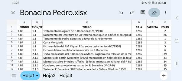 Imagen 2: Captura de pantalla del documento excel con el inventario